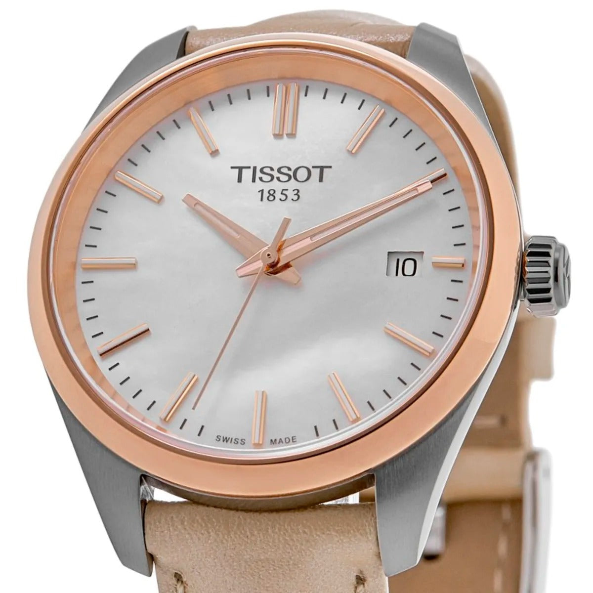 Tissot PR 100 Quartz 34mm Mother of Pearl Dial Cream Leather Strap